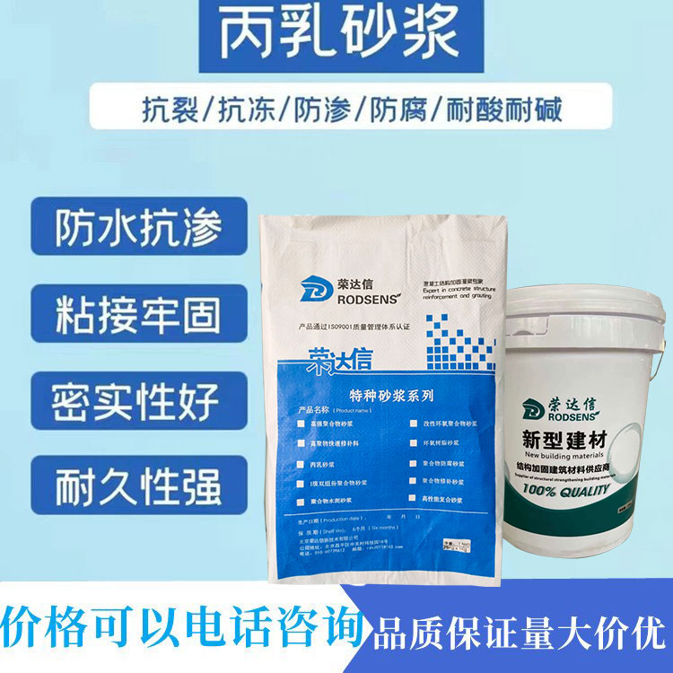 丙乳防水砂浆是以硅酸盐为主体的多种盐类配合特种丙乳乳液胶凝材料和精选石英砂复合制成。产品抹在建筑结构表面形成刚性防水层。砂浆在硬化过程中形成的毛细孔隙和水通道,具有极强的憎水性和潮气的排斥性,从而赋予混凝土结构物与水泥制品优异的防水性能。